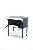 Гриль з регульованою жаровнею 840х540х950 мм.Короб з важільним механізмом підйому колосника, із ящиком для попелу.Короб - чорна сталь 3 мм, ящик - нержавіюча сталь.Решітки – харчова нержавіюча сталь. Каркас - чорна сталь із порошковим покриттям, полиця – нержавіюча сталь.