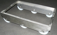 Візок для пластикових ящиків 660х418х158 мм, виготовлений з нержавіючої сталі і поліетиленових коліс.